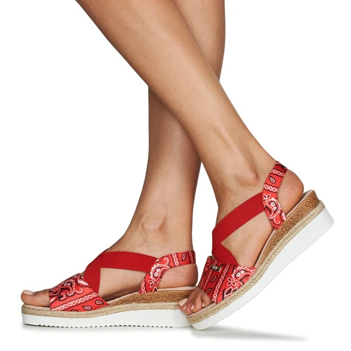 Este modelo de la marca Les Petites Bombes es una referencia de estilo esta temporada. Nos encanta su corte textil de color rojo Nos fascina su tacón de 5 cm.
